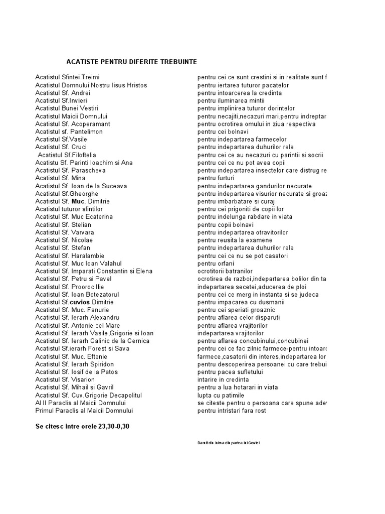 Acatiste Ptr Diferite Trebuinte