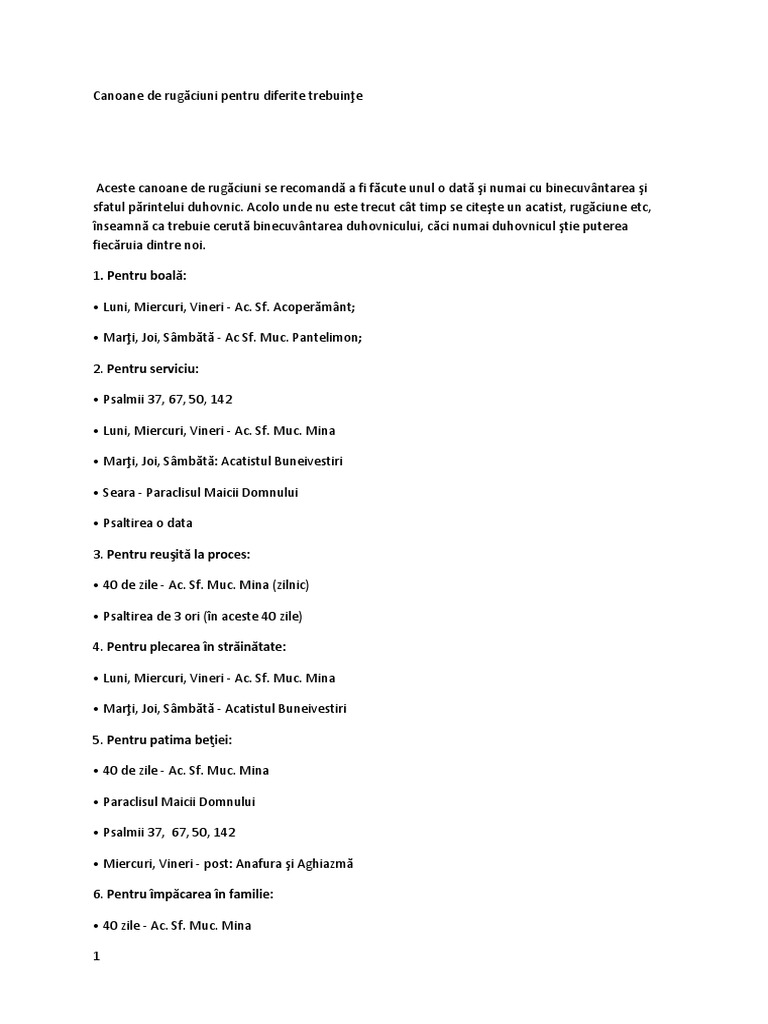 Canoane De Rugaciuni Pentru Diferite Trebuinte
