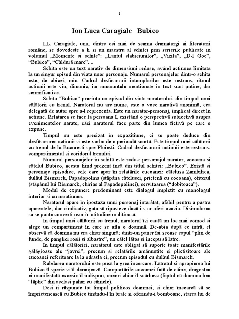 Caragiale I L Bubico Comentariu Literar