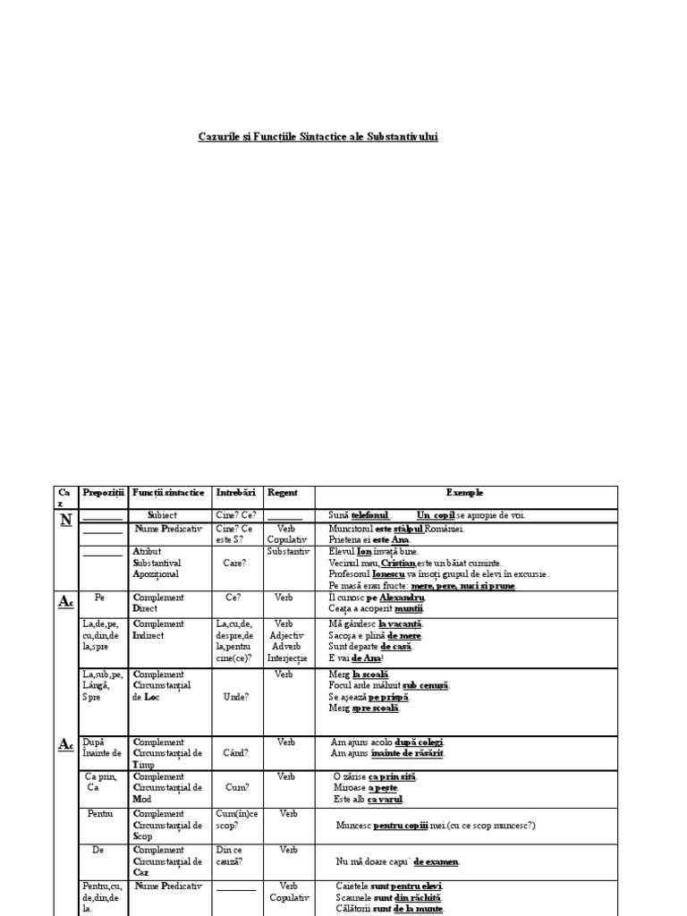 Doc Cazurile Si Funcţiile Sintactice Ale Substantivului Marian