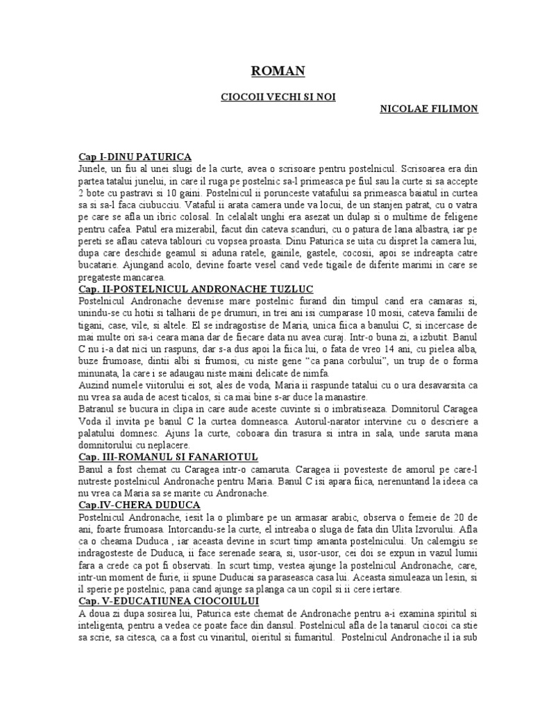 Ciocoii Noi Si Vechi De Nicolae Filimon Rezumat Pe Capitole