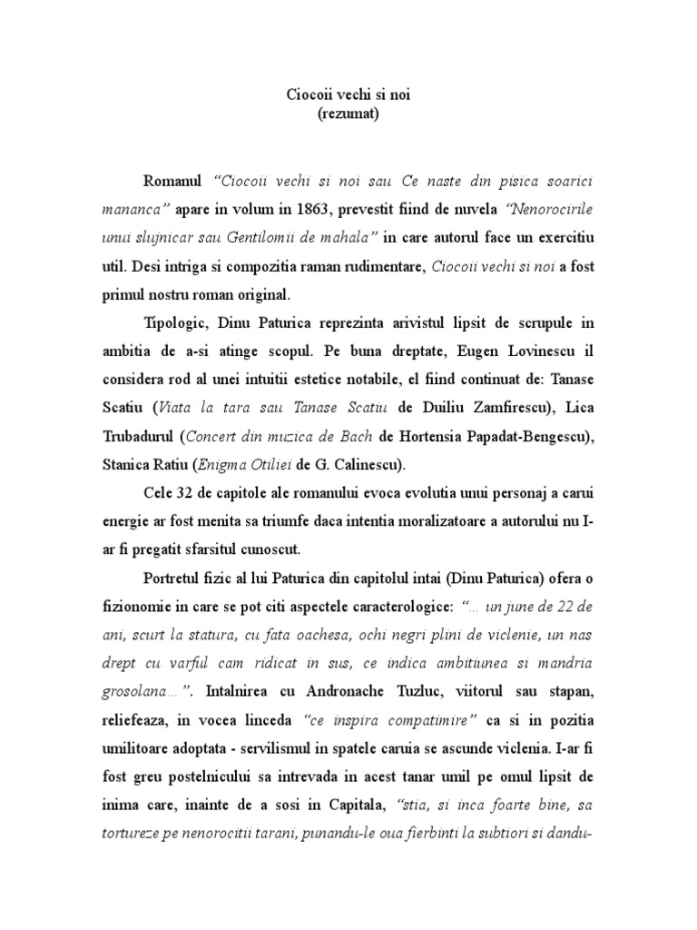 Ciocoii Vechi Si Noi Rezumat Pe Capitole