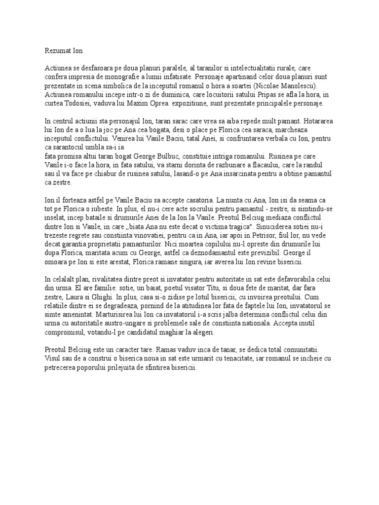 Doc Ion De Liviu Rebreanu Rezumat Cristy Adrian Academia Edu