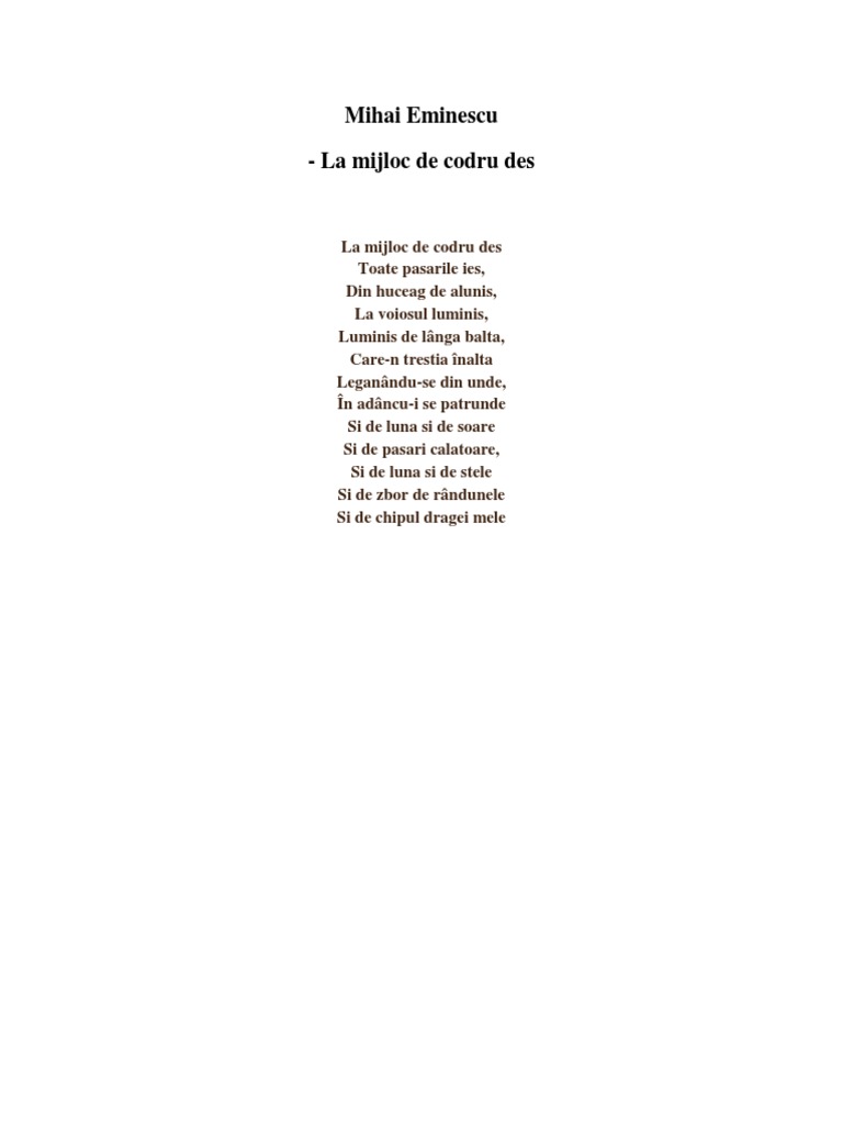 La Mijloc De Codru De Mihai Eminescu La Steaua De Mihai Eminescu