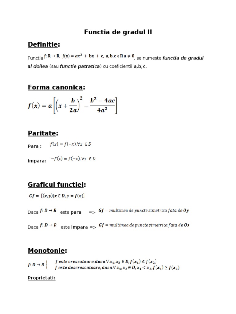 Formule Matematica Functii Functia De Grad Ii Monotonia Functiei