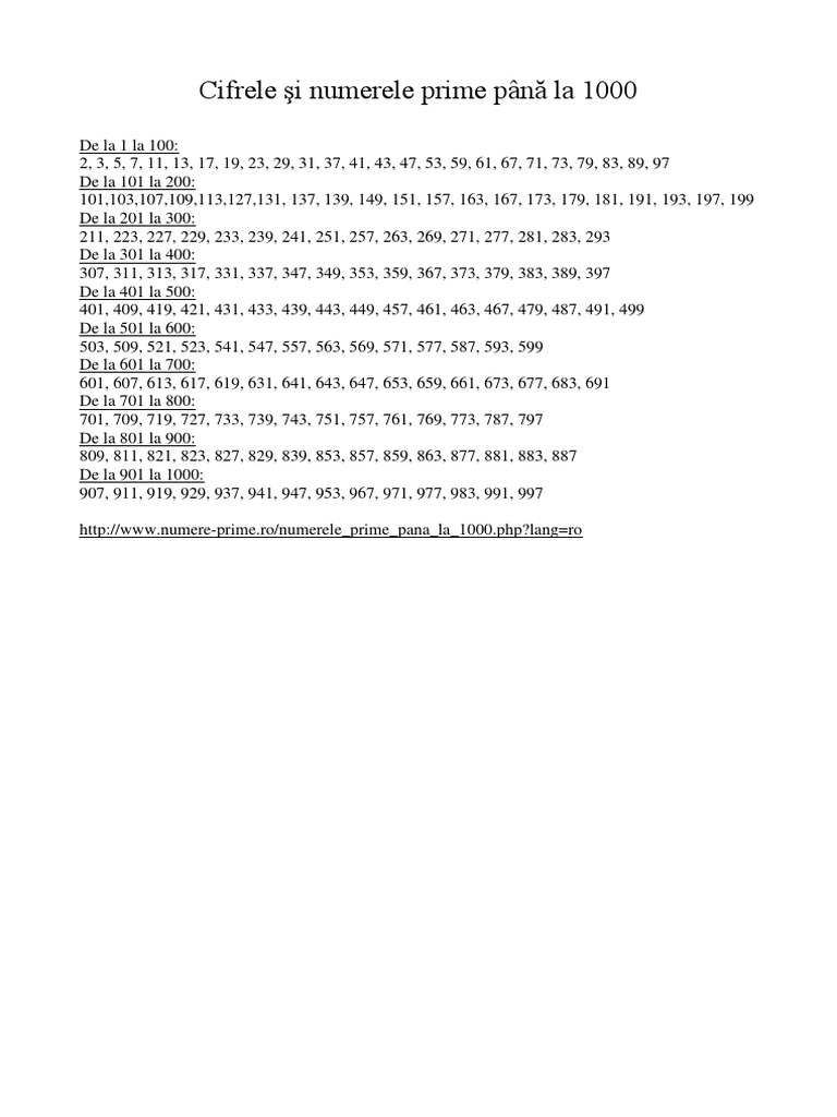 Toate Numerele Prime Pană La 1000 Jitaruionelblog Pregatire