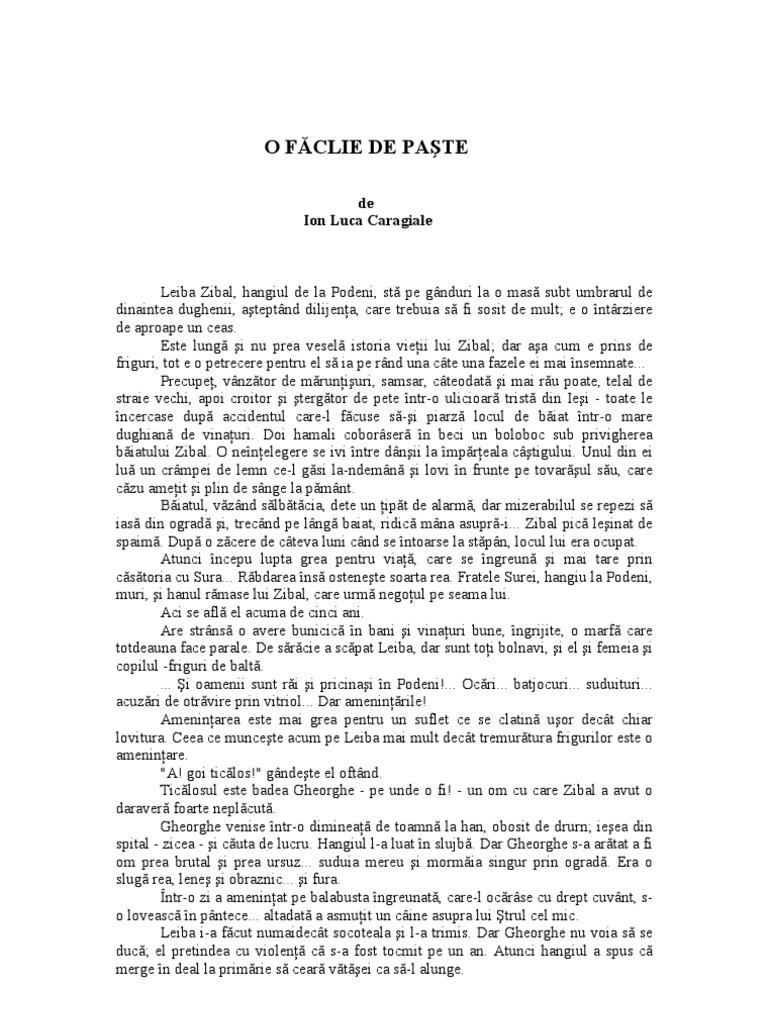 I L Caragiale O Faclie De Paste