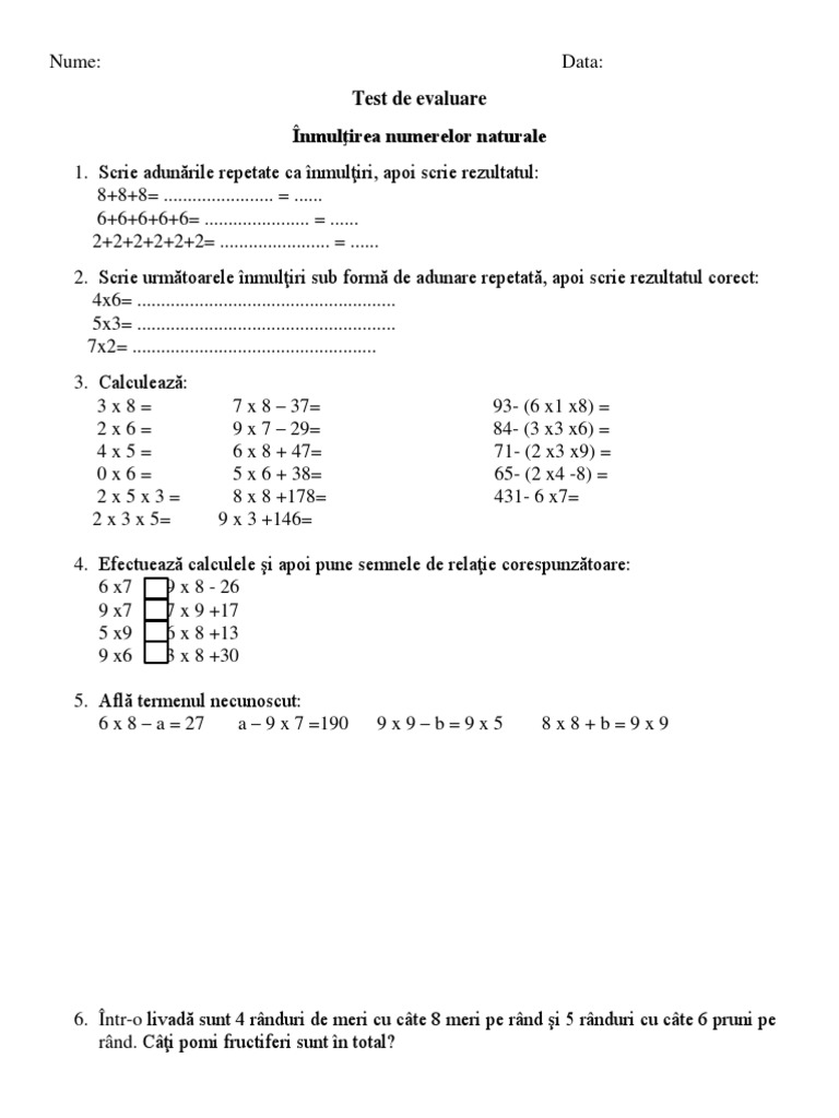 Fisa De Lucru Clasa A Iiia Inmultirea Si Impartirea Qvnd6jyg5r4x