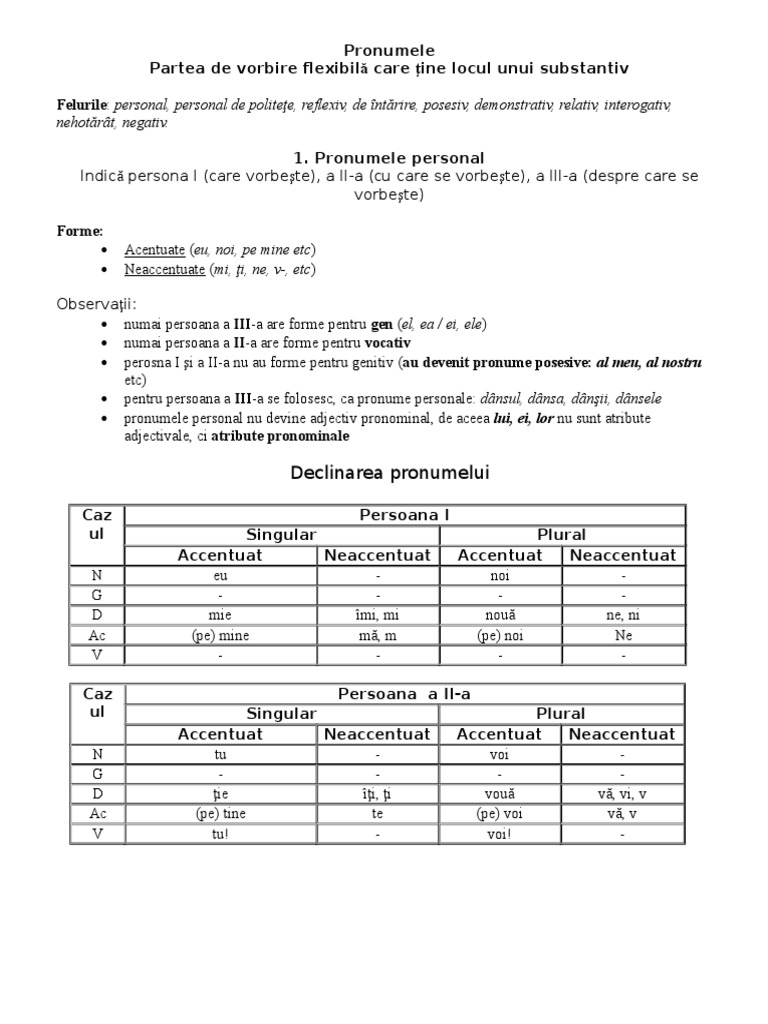 Categoriile Pronumelui Personal De Lipit In Caiete Romanian