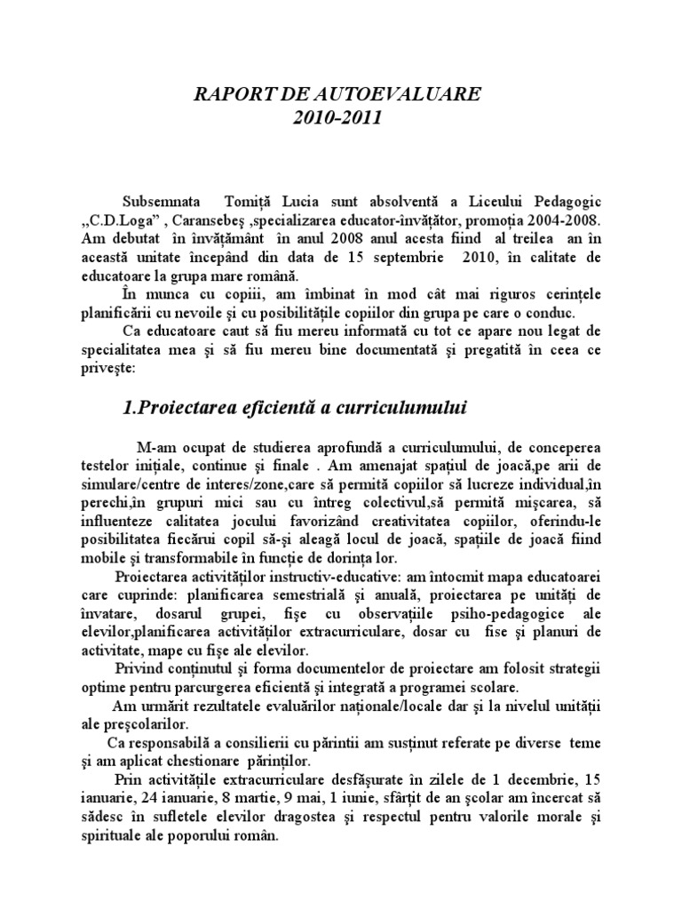 Raport De Autoevaluare Model