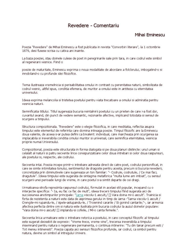 Comentariu Revedere Mihai Eminescu 166390 Graduo