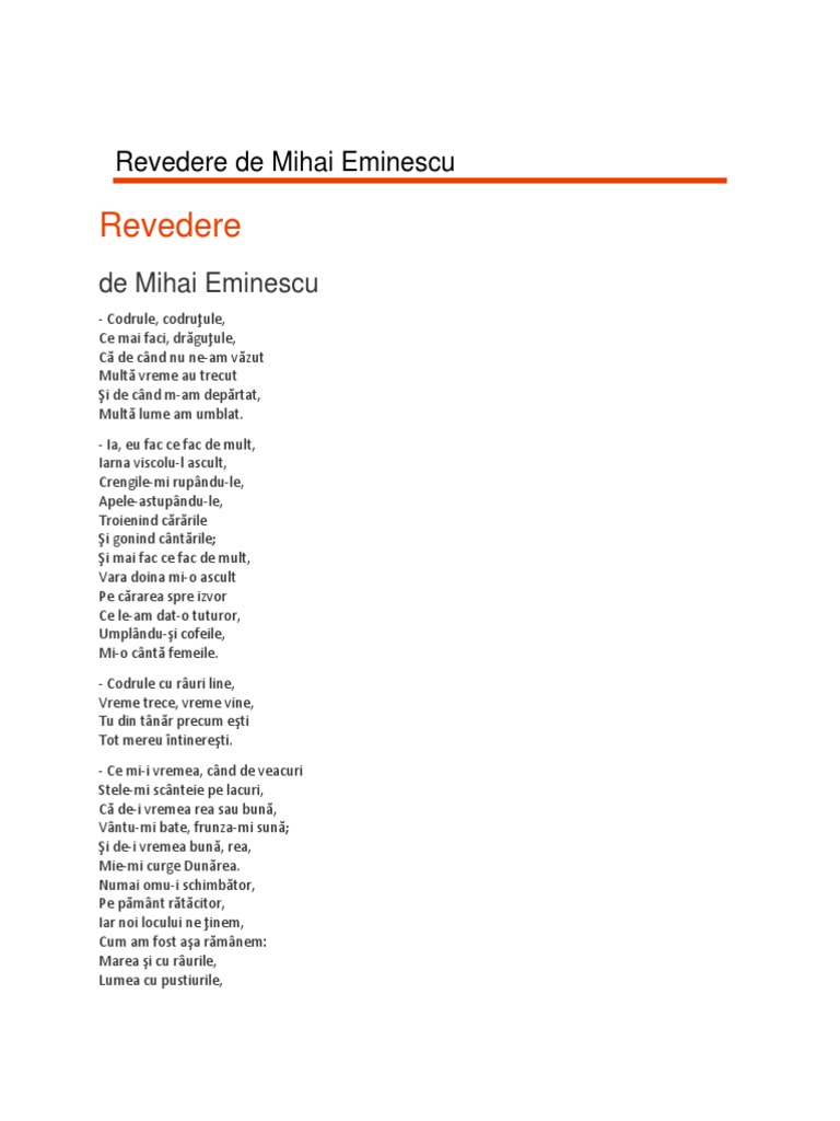 Revedere De Mihai Eminescu Anideșcoală Ro