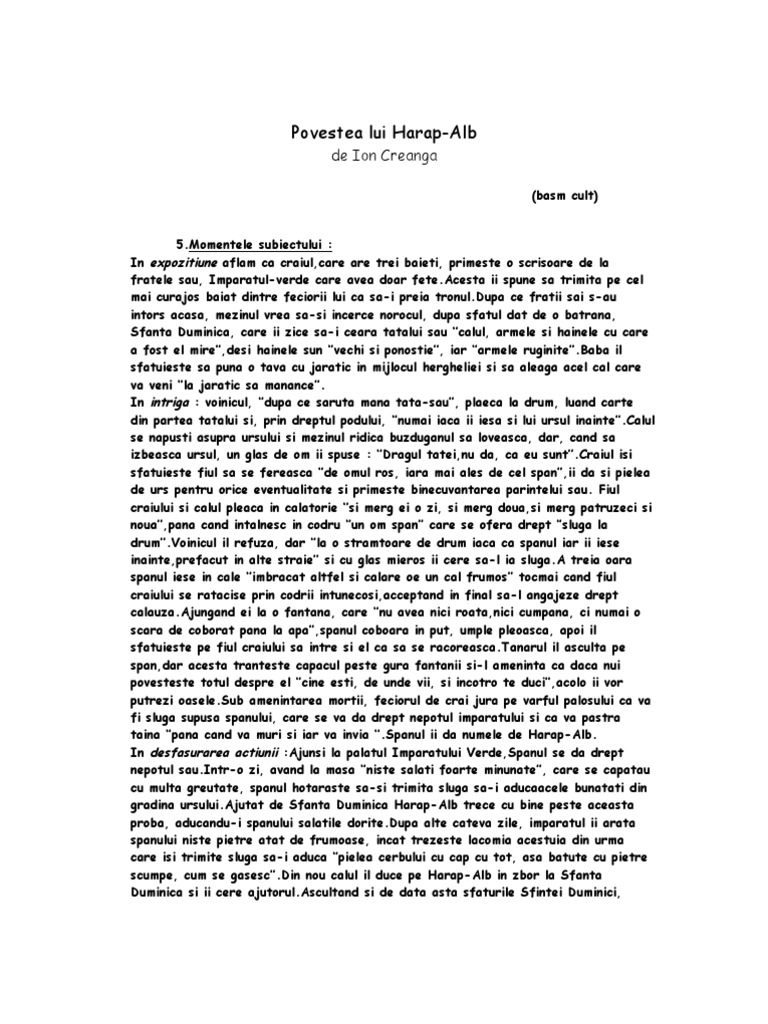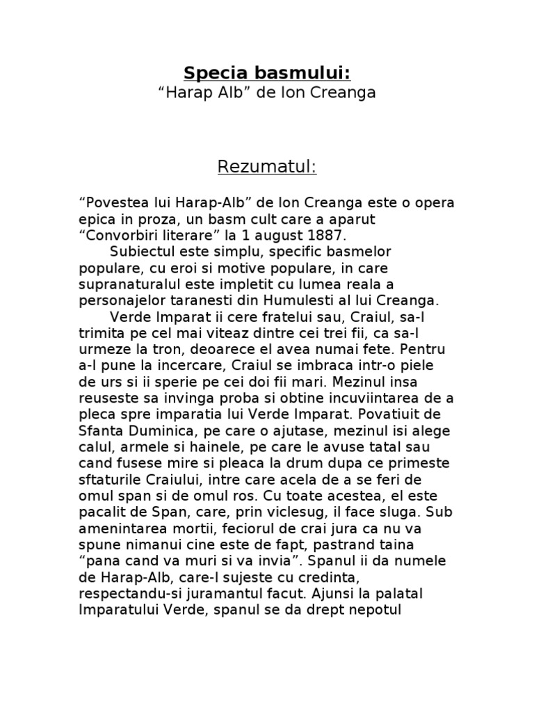 Un Rezumat Pentru Ion Creanga Harap Alb Pentru Clasa A 10 A