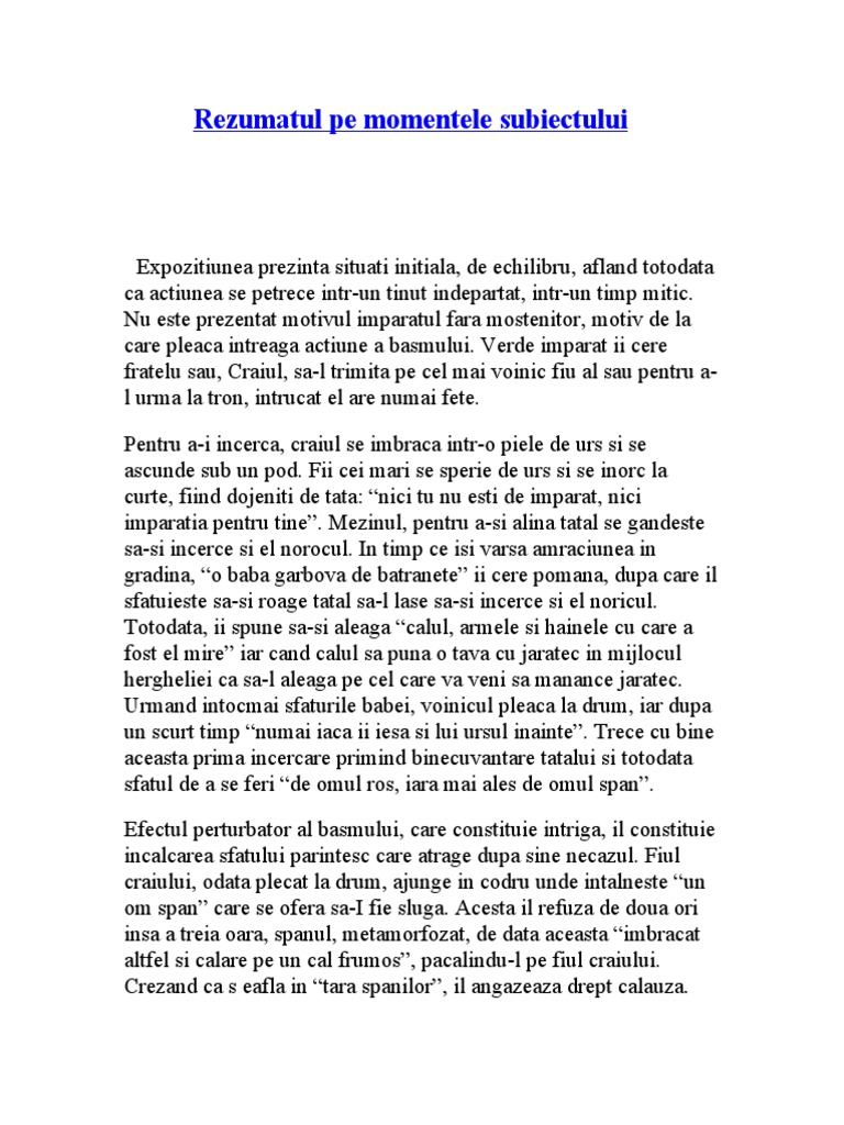 Povestea Lui Harap Alb I Creanga Momentele Subiectului