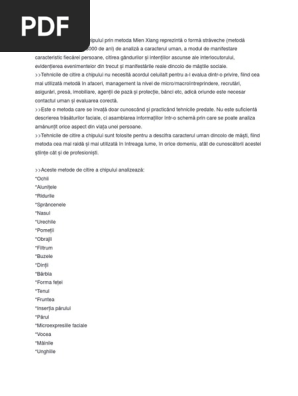 Tehnicile De Citire A Chipului Prin Metoda Mien Xiang Reprezintă O