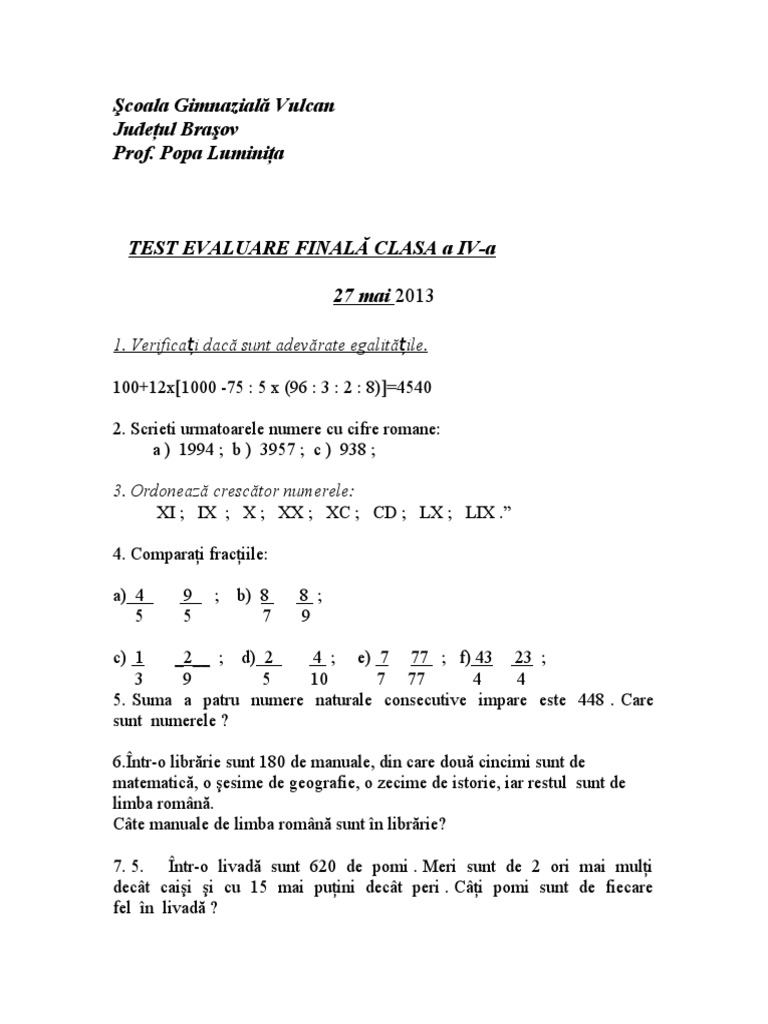 Doc Evaluare Finală La Limba Romană Clasa A Iv A Aneta Calmuc Academia Edu