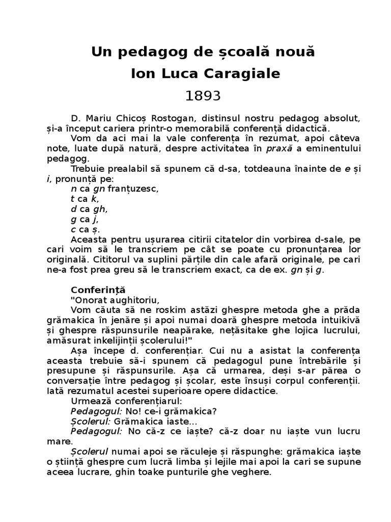 I L Caragiale Un Pedagog De școala Nouă Conferința