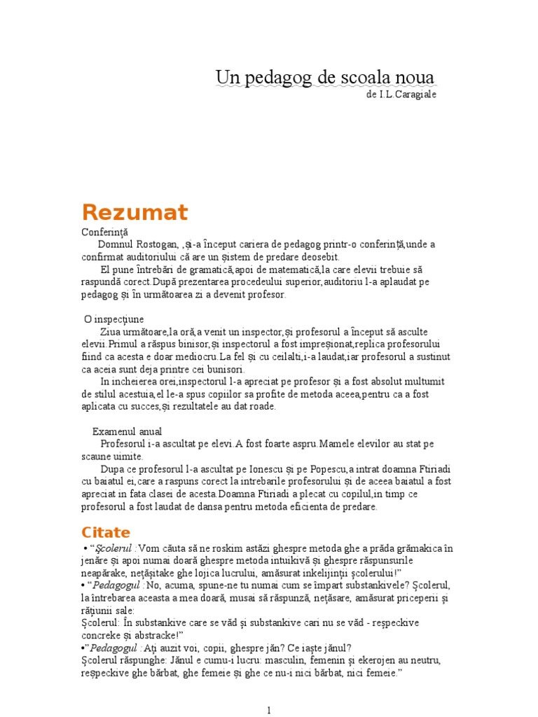Un Pedagog De Scoala Noua De Ion Luca Caragiale Povesti Basme